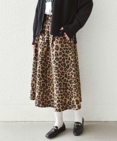 冬のコーディネートに映えるレオパードスカート。