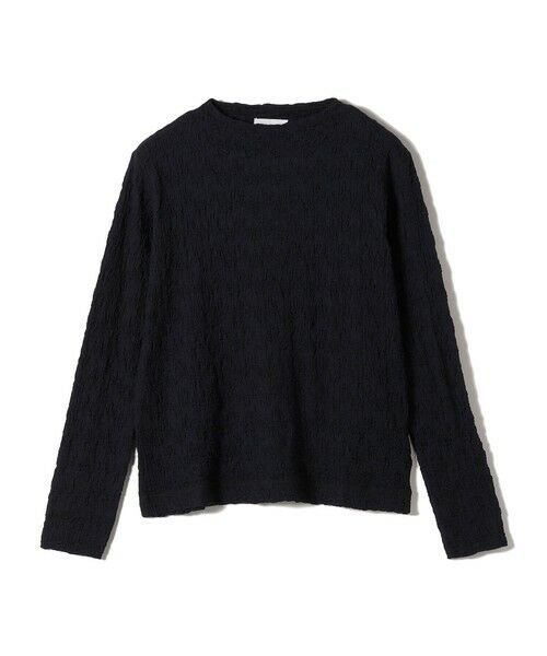 綿混でソフトなタッチに仕上げ、幅広いシーズンで着用可能な素材。凹凸感が特徴的な生地。