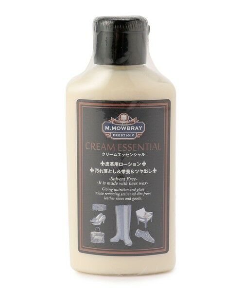 M.MOWBRAY: クリームエッセンシャル 皮革に潤いと栄養を与えながら自然なツヤを与え、同時に表面についた汚れを落としてくれる皮革用クリーム(皮革用乳液)です。動物性油脂ラノリンの配合により皮革の柔軟性も維持し、さらにビーズワックス(蜜ロウ)等の天然成分のエッセンスをバランス良く配合した最高級の皮革用ナチュラルローションです。 ※詳しくは商品詳細画像の説明をご覧ください。※スムースレザー・コードヴァン・ブライドルレザー・合皮製品などの革小物全般にお使いいただけます。