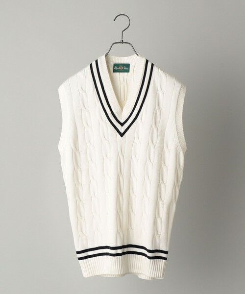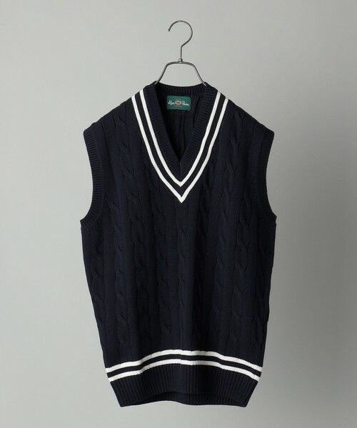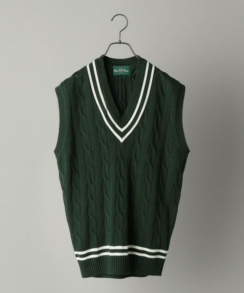 ALAN PAINE:7ゲージ クリケット ケーブル Vネック ニットベスト