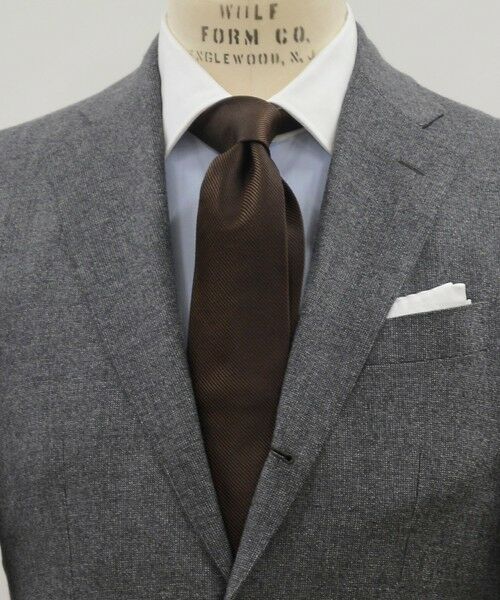 硬派な印象を与えるネクタイですので、梳毛のウール素材のスーツや正統派ドレスシャツと合わせていただくと、よりネクタイの上品な雰囲気を活かすことができます。