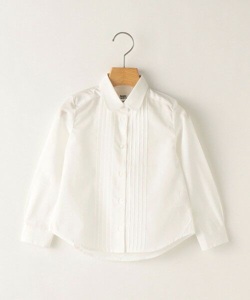 ピンタック×ラウンドカラーがクラシカルな印象のロングスリーブシャツ。定番人気のスタンダードアイテムですが、今シーズンより衿を柔らかく、ジャケットと相性の良いバランスにリニューアル。素材には、綿の中でも高級感のある質感が特徴の100双ブロードを使用。柔らかな手触りとシルクの様なしなやかさ、光沢感は、お子様の晴れの日に華を添えるにふさわしい一枚。メタル釦ジャケット(品番:517-00-0004〜517-00-0005)とあわせた正統派セレモニースタイルがおすすめ◎信頼の日本製なのも魅力のひとつです。