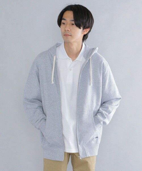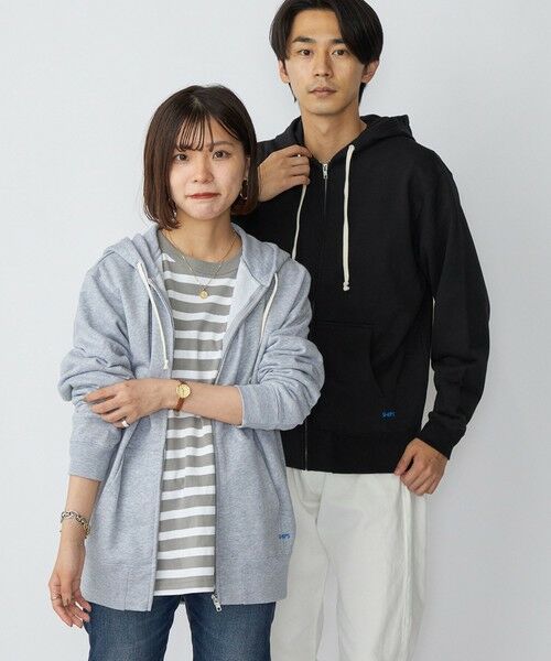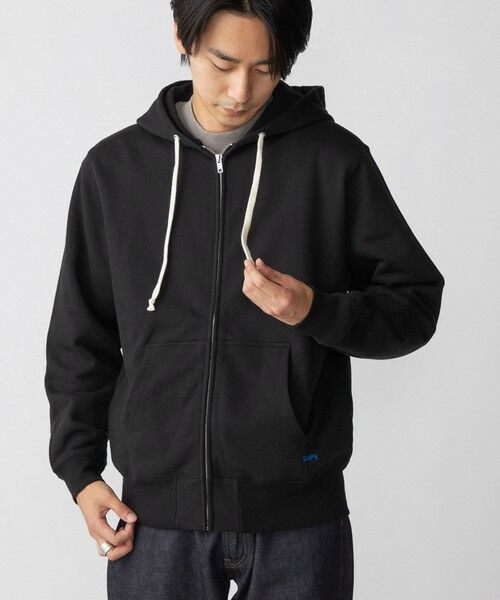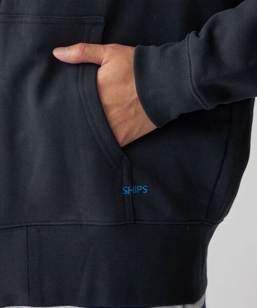 【WEB限定】SHIPS: マイクロ SHIPS 刺繍 ロゴ 裏毛 スウェット ジップ パーカー