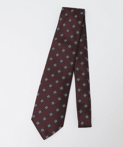 オリジナルのスクエアコモンネクタイ落ち着いた色地で年齢問わずしめやすい仕上がりです。いいネクタイの証の一つのたるみ糸が付いています。※「たるみ糸」は、大剣の裏側にある糸のことで、ネクタイを結ぶ際、この糸が動くことで力を分散させ、縫い糸とネクタイ自体の生地の破損を防ぎます。内側に入り込んでいることもございます。ご了承ください。