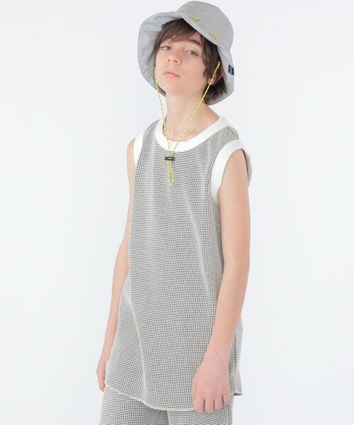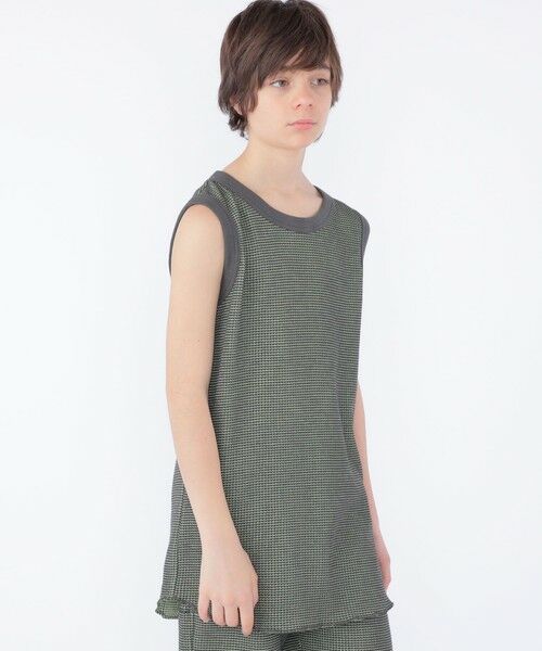 【MOUN TEN.】オリジナル配色のワッフル素材を使用したノースリーブ。バイカラーで作った、細かいチェック柄の様に見える新鮮な印象のオリジナルのワッフル素材を使用。やや着丈が長めで、ラウンドした裾がポイントです。柔らかいワッフル素材で、スッキリとしたシルエットなので、インナーや、小さなお子様にもおススメです。【MOUN TEN.(マウンテン)】『機能的で洗練された子供服』MOUN TEN.は子供にとって快適な洋服であるために“スポーツ”“ワーク”“ミリタリー”を軸に機能的な素材、パターン、ディテールを考えながら日常に溶け込むような、シンプルで洗練されたデザインを心がけています。男の子でも女の子でも、大人でも着たくなるような・・・ストリートでもアウトドアでも、いつでもどこへでも着たくなるような・・・そんな愛着のわく一着目指しています。2017SSからスタートした新しいブランドでありながら、販売開始早々に完売するアイテムもあるなど、感度の高い親子の間でじわじわと注目を集めています。