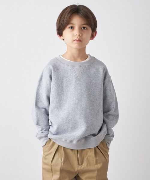 ベーシックな杢グレーのクルーネックスウェットシャツ。