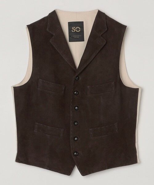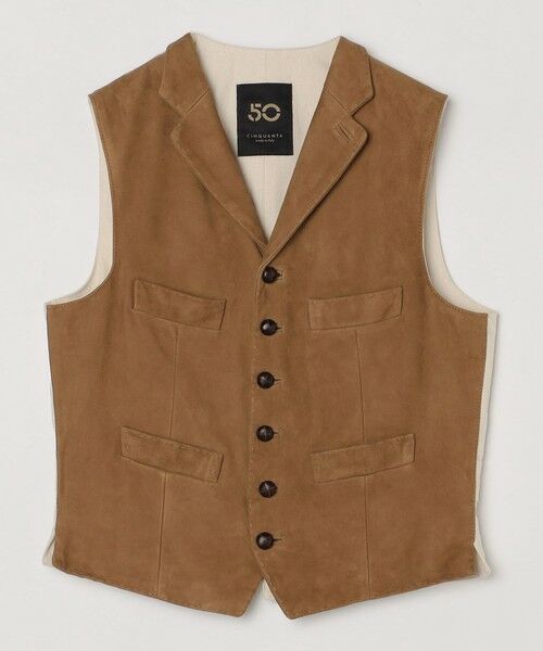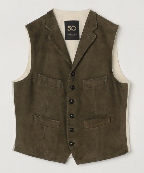 ヴィンテージのベストから型紙を取り作製した、しなやかで上質なスエードを使用したラペルドベスト。