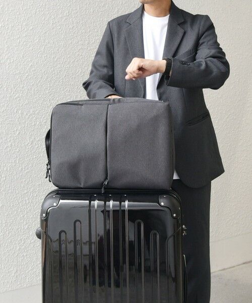 また、バッグ背面部分にあるベルトをスーツケースの持ち手部分に通すことで、出張や旅行時などの持ち運びもしやすくなっています。