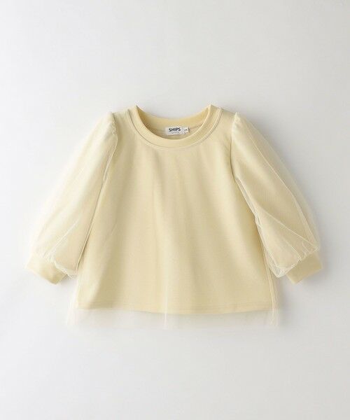 シンプルなクルーネックのカットソーにチュールを重ねたデザイントップス。