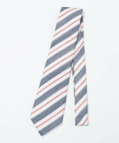 季節感を演出する リネン シルク 素材の マルチ ストライプ ネクタイ