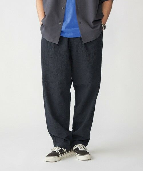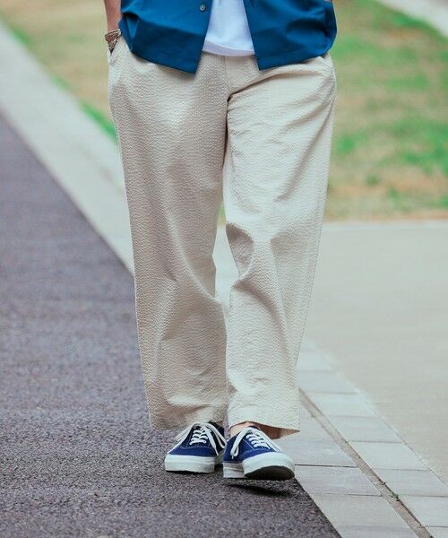 清涼感のあるシアサッカー素材を使用したイージーパンツ