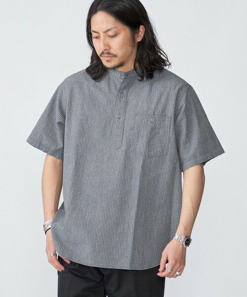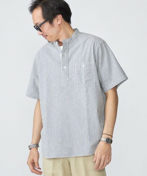 暑い時期に最適なシアサッカー素材を使用したプルオーバーシャツ(半袖)