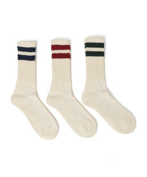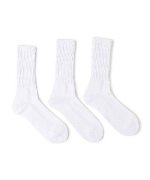 【デザイン】程よい厚みでしっかりとした履き心地のクルー丈ソックスが3足セットで登場!シンプルな無地ホワイトのセットと、スポーティなライン入りのセットの展開。ローファーやスニーカーだけでなくスポーツサンダルとの相性もよく、普段使いに大変オススメのアイテムです。【注意事項】※末永く愛用頂く為に、アテンションタグ・洗濯ネームを必ずご確認の上、着用又はお取り扱いください。※撮影環境による光の当たり具合やパソコン・スマートフォンなどの閲覧環境によって、実際の色味と異なって見える場合があります。あらかじめご了承ください。商品の色味は商品単体で撮影した画像をご参照ください。