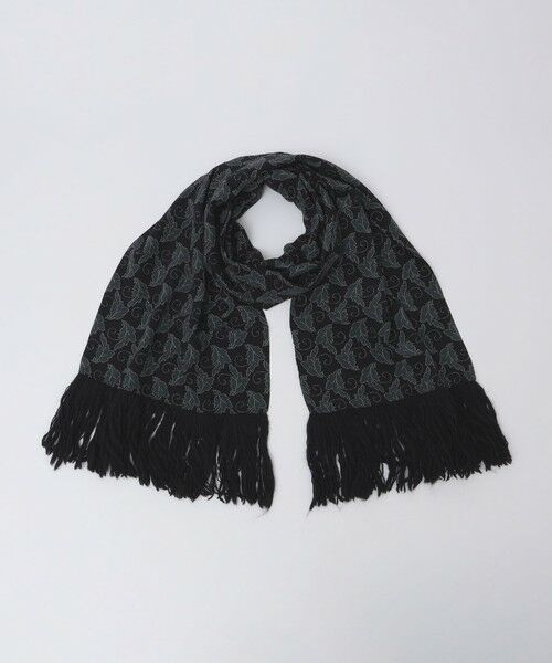【SHIPS別注】STEFANO CAU リーフモチーフプリント フリンジ付き ストール