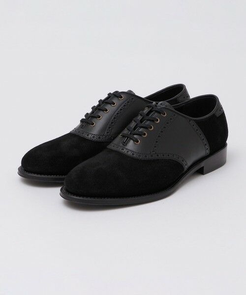 表革とワックスドスエードとのコンビネーションのサドルシューズ。