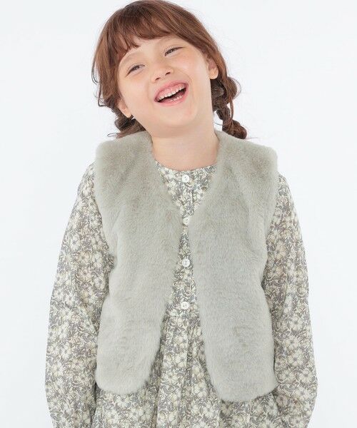 ふわふわで柔らかなフェイクファーとリバティ柄を組み合わせた、キュートなベストです!