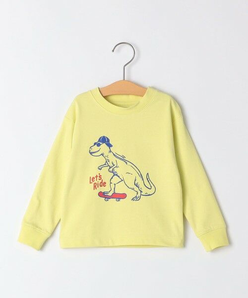 毎シーズン大好評!男の子が大好きな恐竜がプリントされた長袖TEEシャツ。ユニークなティラノサウルスがスケボーに乗っているインパクト抜群なデザインです。サングラスをかけ、キャップを被った、見た目にも楽しい男の子心をくすぐる要素をプラス♪表面はコットン素材、裏面には吸水速乾性を備えたクールマックス(R)素材を採用。柔らかくなめらかな肌触りに、さらっとした快適な着心地で汗をかきやすいキッズに嬉しいポイントです!デイリーにはもちろん、アクティブシーンにもお使いいただけるアイテムです。