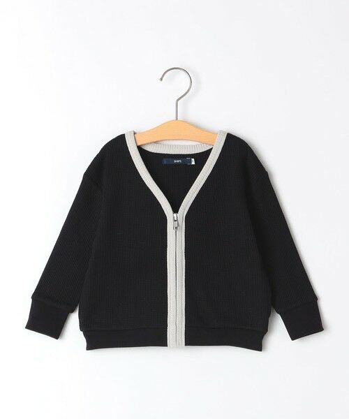 襟と前立ての配色パイピングがポイントのワッフルカーディガンです。ほど良い厚みの凸凹とした表情豊かなワッフル生地を使用し、ソフトな肌触りで着心地抜群!フロントジップを施してアクセントをプラスし、上品な印象に仕上げました。便利な両脇ポケット付きで実用性もあり、デイリーユースにピッタリの一枚◎シンプルなデザインで、公園遊びや学校、オケージョンシーンにも活躍する万能アイテムです!