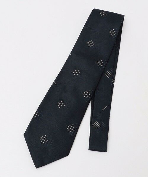 上品なシルク生地にスクエア小紋柄のジャカード織りのネクタイ。