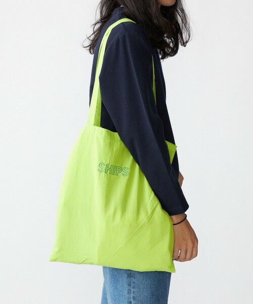 ユニセックスでオススメ!超軽量なナイロン素材のトートバッグ非常に軽いナイロン素材を使用したトートバッグ。持ち手が長くPCなども入れられる便利なアイテム。内側のゴムで小さく折り畳んで収納できる仕様になっており、スマートな持ち運びが可能です。配色に拘ったSHIPSロゴを刺繍で施し、ゴムでまとめた時にもブランドのロゴが見える抜かりのないデザインも魅力です。【注意事項】※生産状況により店舗にて販売する場合もございます。※末永く愛用頂く為に、アテンションタグ・洗濯ネームを必ずご確認の上、着用又はお取り扱いください。※撮影環境による光の当たり具合やパソコン・スマートフォンなどの閲覧環境によって、実際の色味と異なって見える場合があります。 商品の色味は商品単体で撮影した画像をご参照ください。※画像の商品はサンプルです。 実際の商品と仕様、加工、サイズが若干異なる場合がございます。