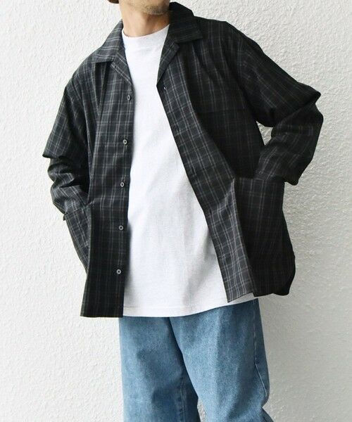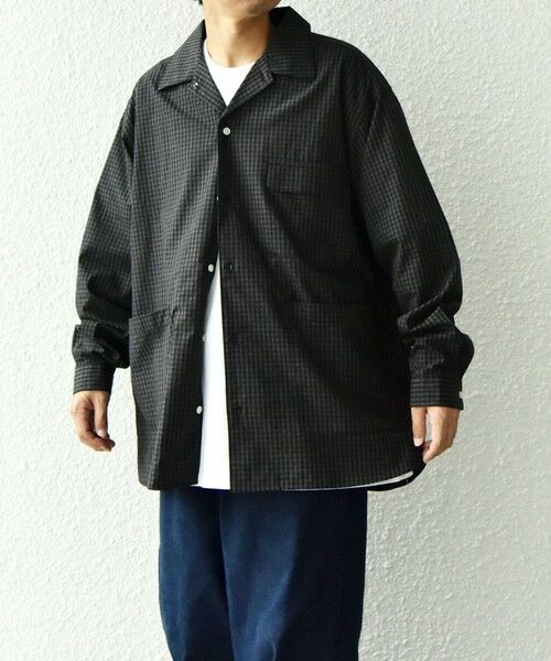 シャツ素材を使用し、ポケットディテールを施した薄手のジャケットのようなアイテム
