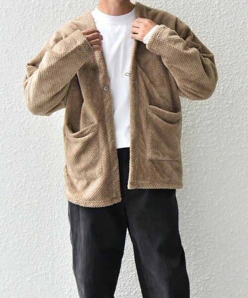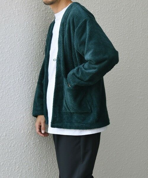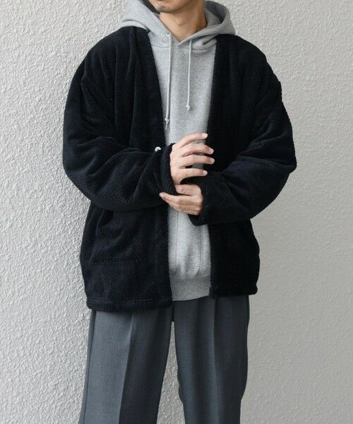 カーディガン型をベースに羽織の要素を入れたフリースアイテム。