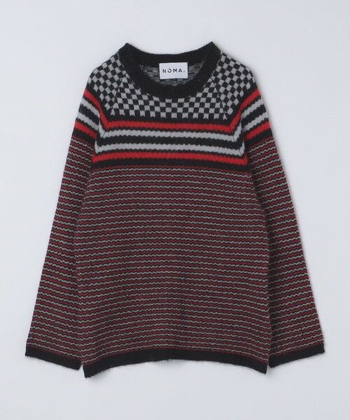 チェッカーとストライプを組み合わせた、存在感のあるモヘヤ混ニット