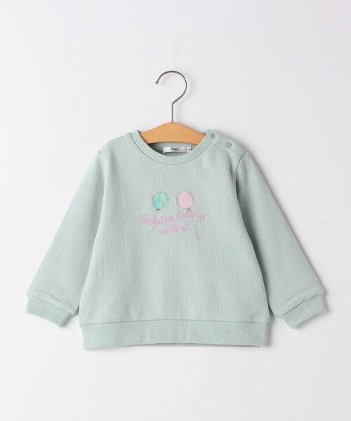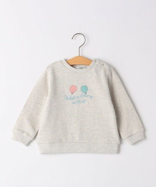 風船がふわふわ飛んでいるような繊細なプリントがポイントのスウェットです。キラキラしたスパンコールで風船のふくらみをイメージし、リボン風の文字をあしらった女の子心をくすぐる一枚。コーディネートに取り入れやすい淡い透明感のあるシンプルなデザインに仕上げました。綿100%の裏毛素材を使用し、柔らかく快適な着心地◎優しいオートミールとライトブルーの2色展開で、ボトムを選ばずデイリーユースにピッタリのアイテムです。程よい肉感で、アウターも羽織りやすく、ロングシーズンお使いいただけます。※80,90cmサイズのみ肩釦つき。