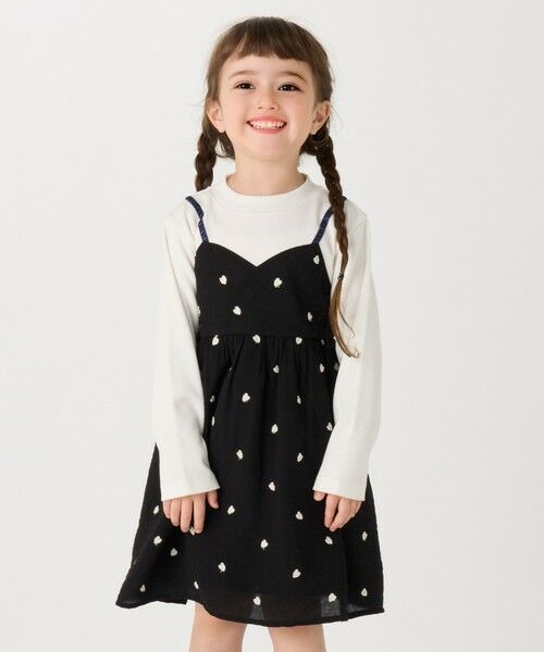 リブトップスとハート刺繍の布帛をドッキングしたワンピース。