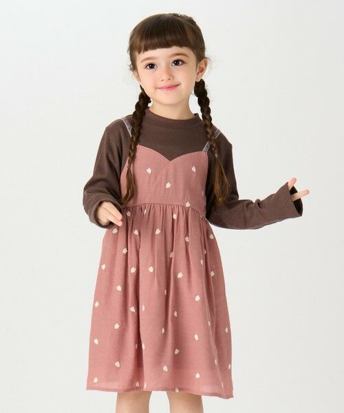 キャミソールワンピースを重ね着したようなデザインで、後ろには可愛らしくリボンが付いています。