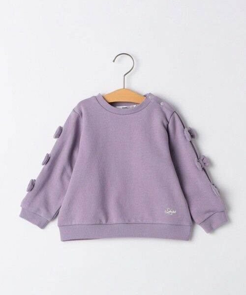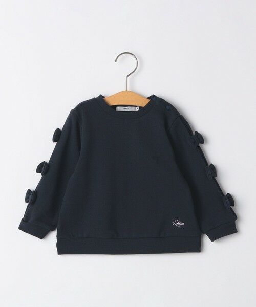 袖にあしらった立体感のあるリボンが、女の子心くすぐるスウェット。ネイビーとラベンダーの2色展開で、甘すぎない上品な色合いにもこだわった一着です。裾にはさりげなく「SHIPS」のロゴも。袖には深めのタックを入れ、腕まくりをするとふんわり可愛らしいシルエットになるのもポイントです◎柔らかい綿100%の裏毛素材を使用しており、デイリーユースにもピッタリ。可愛らしさと着やすさを兼ね備えた、一枚で決まる主役アイテムです!※80,90cmサイズのみ肩釦つき。