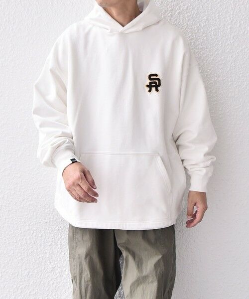アイコニックなワンポイントサガラ刺繍を施したプルオーバー型のスウェットパーカー。