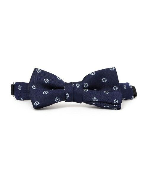 程良い微光沢が気品漂うシルク素材の蝶ネクタイです。ネイビーをベースにサックスの差し色が効いた小紋柄がポイントとなり、入学式や卒業式、発表会など、お子様の特別な日を鮮やかに彩ります。首回りは、アジャスター付きのゴム仕様。お子様の成長に合わせてお使いいただけます。お子様一人でも取り外しができるフックで留めるだけの簡単仕様も嬉しいポイントです♪同柄で、簡単仕様の結びタイ(品番:519-35-0032)、ネクタイ(品番:519-36-0009)もござます。