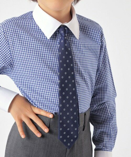 程良い微光沢が気品漂うシルク素材のネクタイです。ネイビーをベースにサックスの差し色が効いた小紋柄がポイントとなり、入学式や卒業式、発表会など、お子様の特別な日を鮮やかに彩ります。首回りは、アジャスター付きのゴム仕様。お子様の成長に合わせてお使いいただけます。お子様一人でも取り外しができる簡単仕様も嬉しいポイントです♪同柄で、蝶ネクタイ(品番:519-34-0005)、ネクタイ(品番:519-36-0009)もござます。