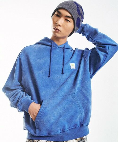 綿100%の綺麗な裏毛生地にフロスト加工を施したスウェットパーカー。