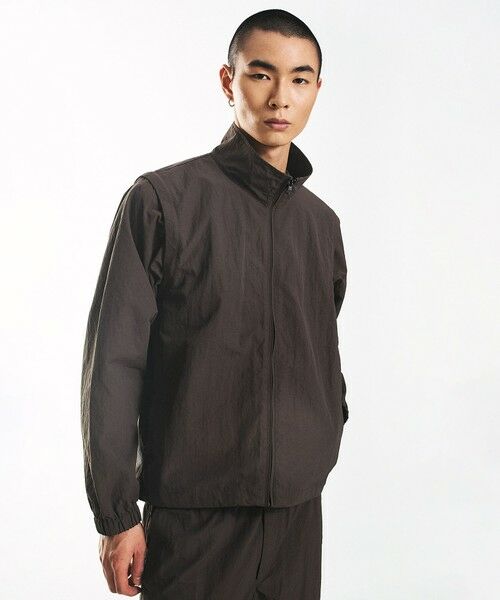 肩のジップを外すと袖が外れ、ベストとしても着用できる2WAY仕様で、長いシーズンで使用可能な一着。