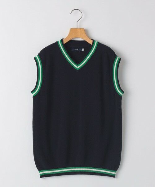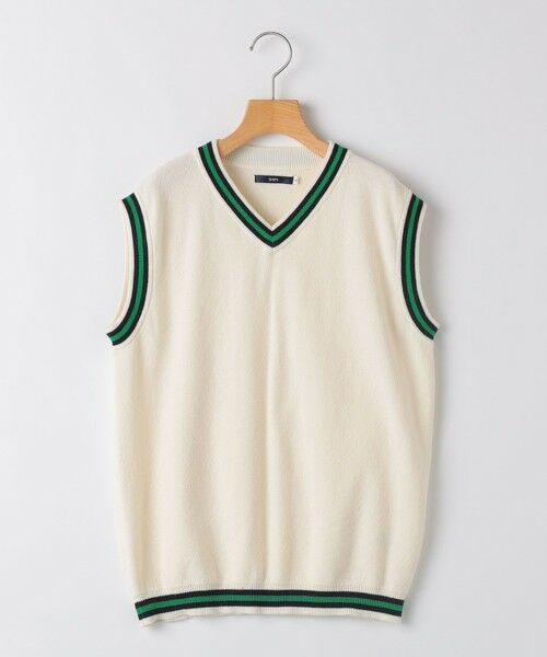 配色ラインがポイントのミラノリブで編み立てたニットベスト