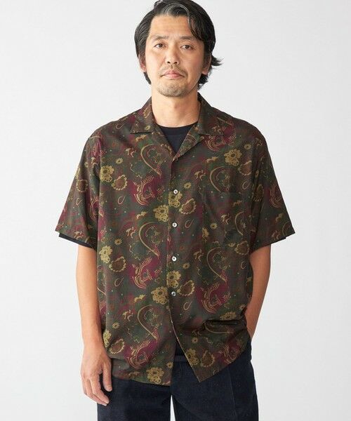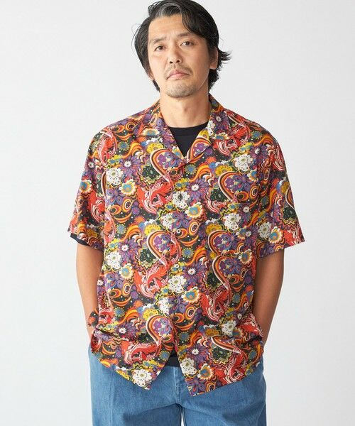 リバティプリントのレーヨン/キュプラ/シルク生地を使用した、キャンプカラーシャツ。