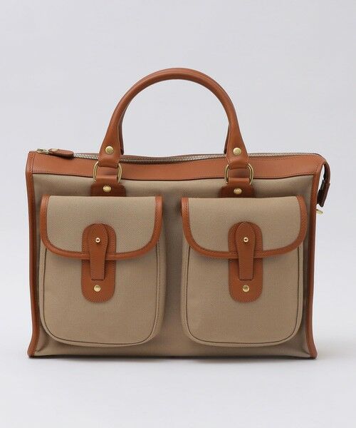 正面にはフラップ付きのポケットを2つ、背面にはスリットポケットが2つとユーザビリティの充実した仕上がりで、ビジネスシーンから普段使いまで幅広いシーンでの活躍が期待されるブリーフケース。