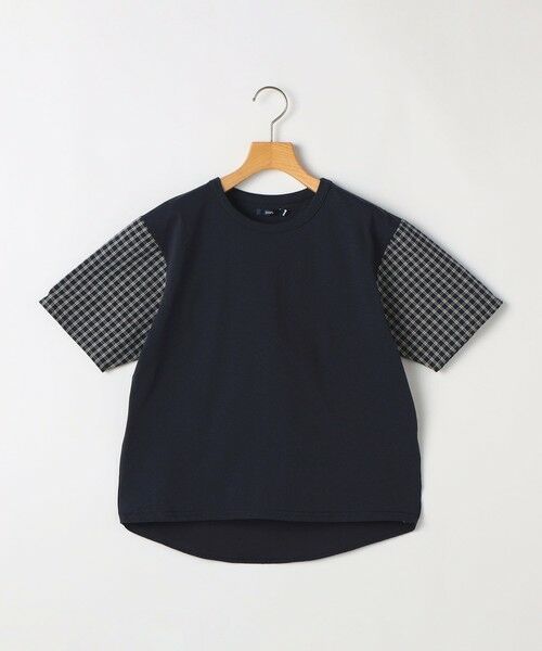 SHIPS KIDS:140〜160cm / チェック 切替 半袖 TEE