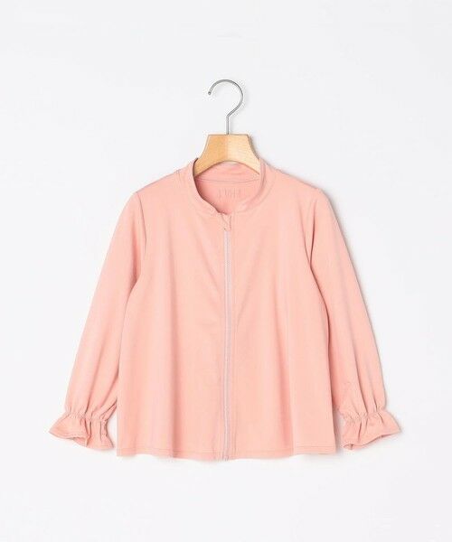 フレアシルエットとボリューム感のある袖や袖口のシャーリングのフリルが、女の子らしさを引き立ててくれるラッシュガード。