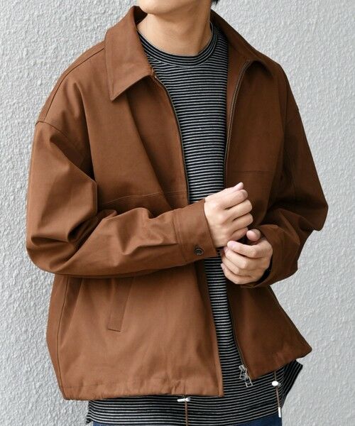 色味・タッチ感が品の良いフェイクスエード(ポリエステル)を使用したショートジップブルゾン