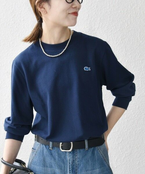 【SHIPS any別注】LACOSTE: ワンポイント ピケ クルーネック Tシャツ 25AW (ロンT)◇