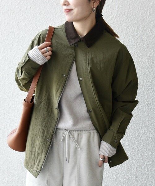 表地にタスランナイロン、衿部分にコーデュロイを組み合わせたコンビネーション素材。