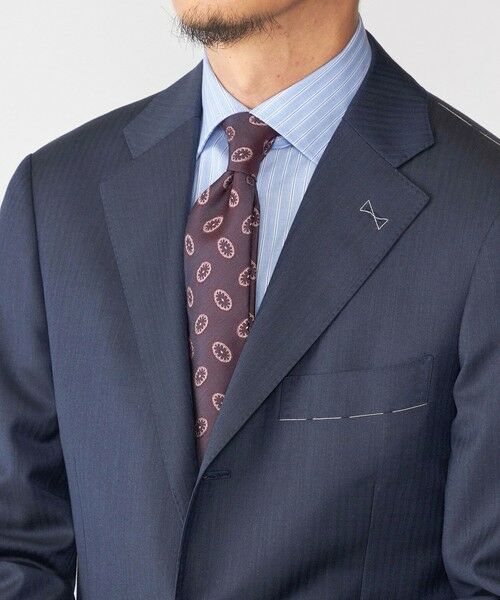 ウール混のネクタイなので梳毛のスーツだけでなくサキソニー生地のスーツとの相性も◎