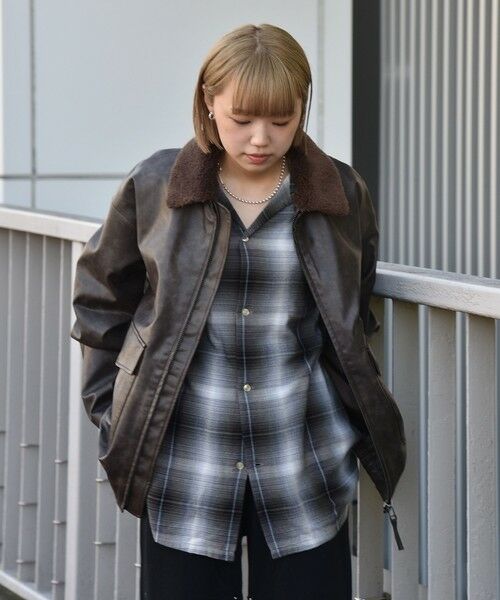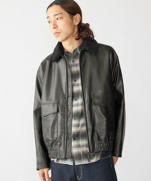 ビンテージ感のある合成皮革を使用したフライトジャケット。