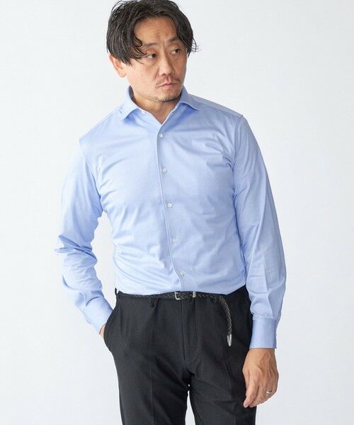 ジャケットのインナーに入れると、ジャージーシャツとは思えないほどの上質な印象を与えます。