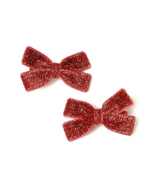 キラキラとしたラメが存在感のあるリボンモチーフのヘアピン。