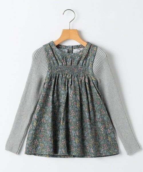 お袖はリブニット素材を使ったレイヤード風デザインで、重ね着しているようなおしゃれな仕上がりに。