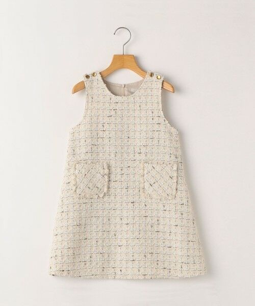 キラキラした上品なラメ糸を織り交ぜ、様々な糸を織り込んだツイード素材を使用したジャンパーワンピース。
